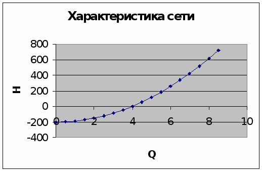 Для данного трубопровода уравнение характеристики сети имеет вид: