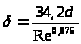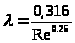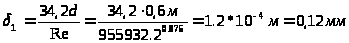 После определения Re необходимо рассчитать толщину ламинарного подслоя в турбулентном потоке: