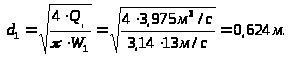 При последовательном соединении Q>1> = Q>2> = Q>3>, задаемся внутренним диаметром d =650 мм, чтобы предотвратить разгон газа, тогда: