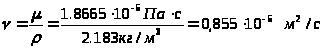 Для расчета кинематической вязкости необходимо сначала рассчитать динамическую вязкость, при: