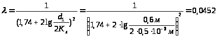 Абсолютная шероховатость ∆=0.5мм. Тогда ∆>д имеем область гидравлически шероховатых труб.