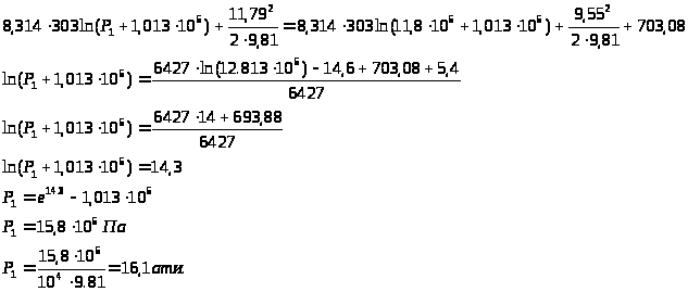Подставляем известные значения, для этого необходимо перевести давление из ати в Па, т.е. р = 12 ати = 12·9,81·104 Па = 11,8·105 Па,