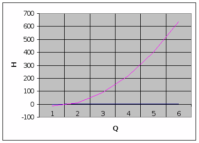 Теперь необходимо построить график H(Q), построение выполняем в Microsoft Excell. Характеристика сети показана на рисунке .