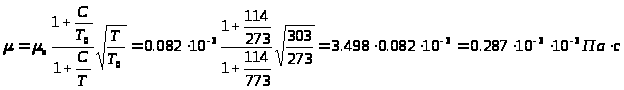 μ>о> = 0,082·10-3 Па·с - динамическая вязкость газа при 0 оС;