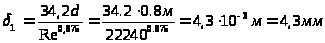Абсолютная шероховатость ∆=1мм.Тогда ∆≤δ имеем область гидравлически гладких труб.