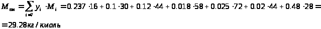 4.1.3. Молекулярная масса смеси газов в топливе: