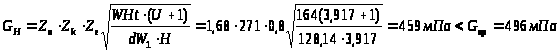 и по контактным напряжениям в зубе шестерни [I]=496 мПа