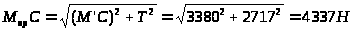 M>C>r=-F>2>∙(c+a)+R>B>r∙a=-18000∙0,245+1374∙0,085=-3245Hm