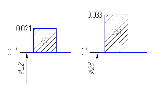 d>1>=22H7 мм, d>2>=28H8 мм, l>1>=l>2>=38 мм;