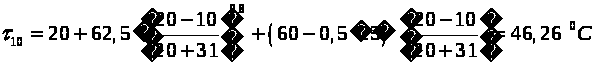 Виконаємо розрахунки t>1п >і t>2п >і для інших значень t>н>. Визначимо, використовуючи розрахункові залежності, температури мережної води t>2v> після калориферів систем вентиляції для t>н >= +10 0С и t>н >= -31 0С (при наявності рециркуляції). При значенні t>н >= +10 0С задамося попередньо величиною