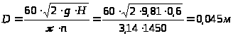 Приймаємо D=45мм – виходячи з конструкційних міркувань.