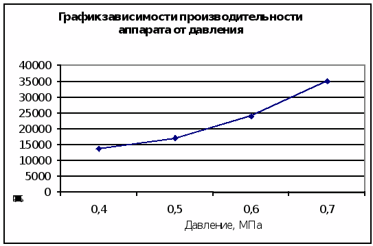 Рисунок 6.3 График зависимости производительности аппарата от давления