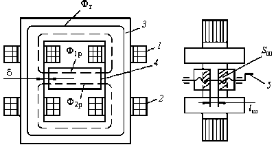Рис. 3. Конструктивная схема трансформатора с подвижным магнитным шунтом