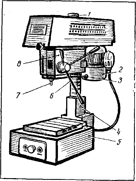Одношпиндельные вертикально-сверлильные станки в свою очередь делятся на: а) настольные станки для обработки отверстий диаметром 3,6 и 12 мм, применяемые в приборостроении (рис. 1,а) с подачей шпинделя вручную;