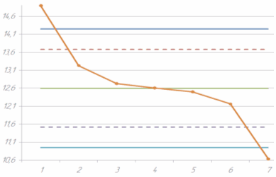 Так же указаны границы, определяющие статистическую устойчивость, которые можно определить по формуле: