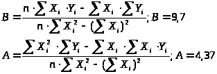 Параметры прямой определим по методу наименьших квадратов.