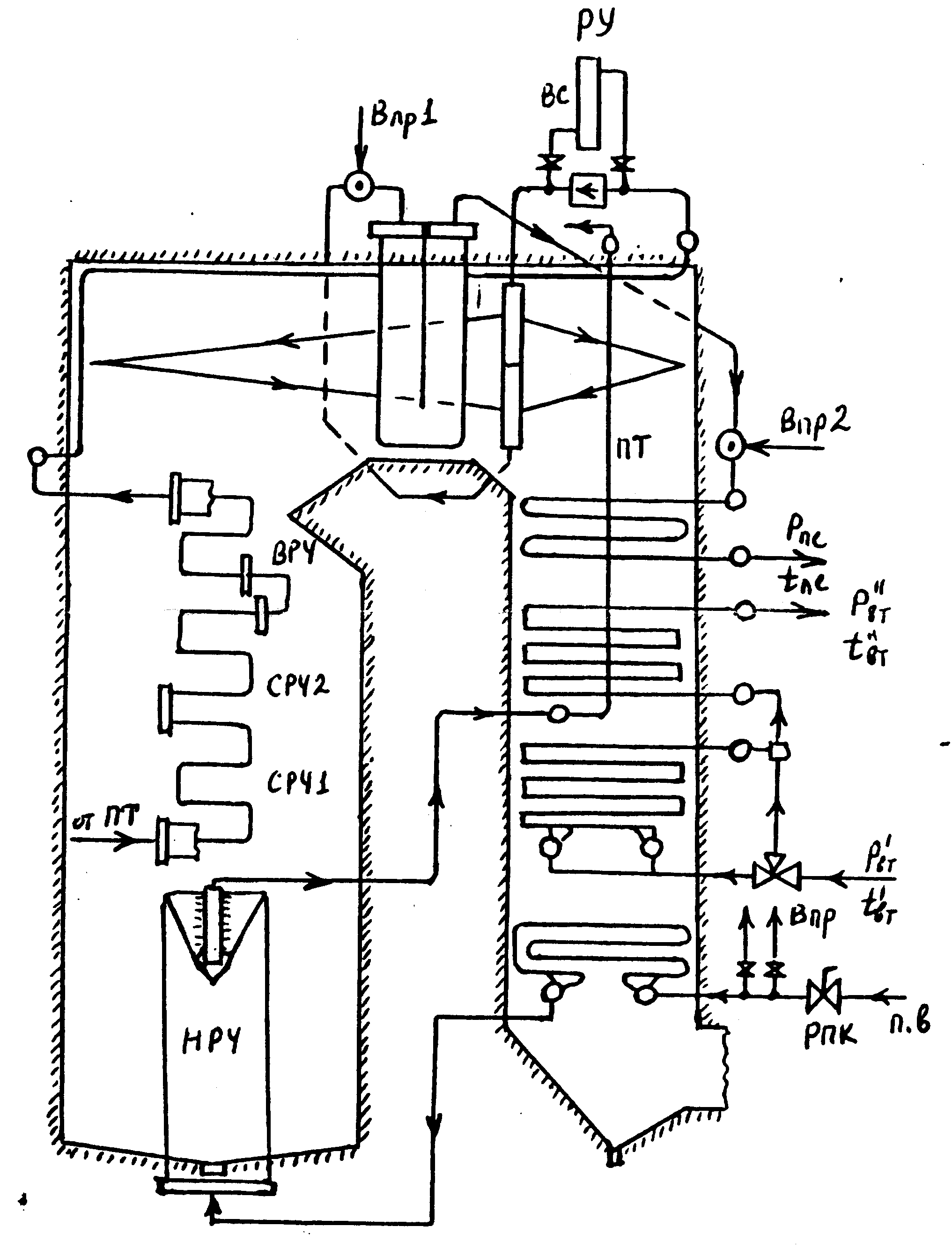 промпароперегревателя. В опускном
