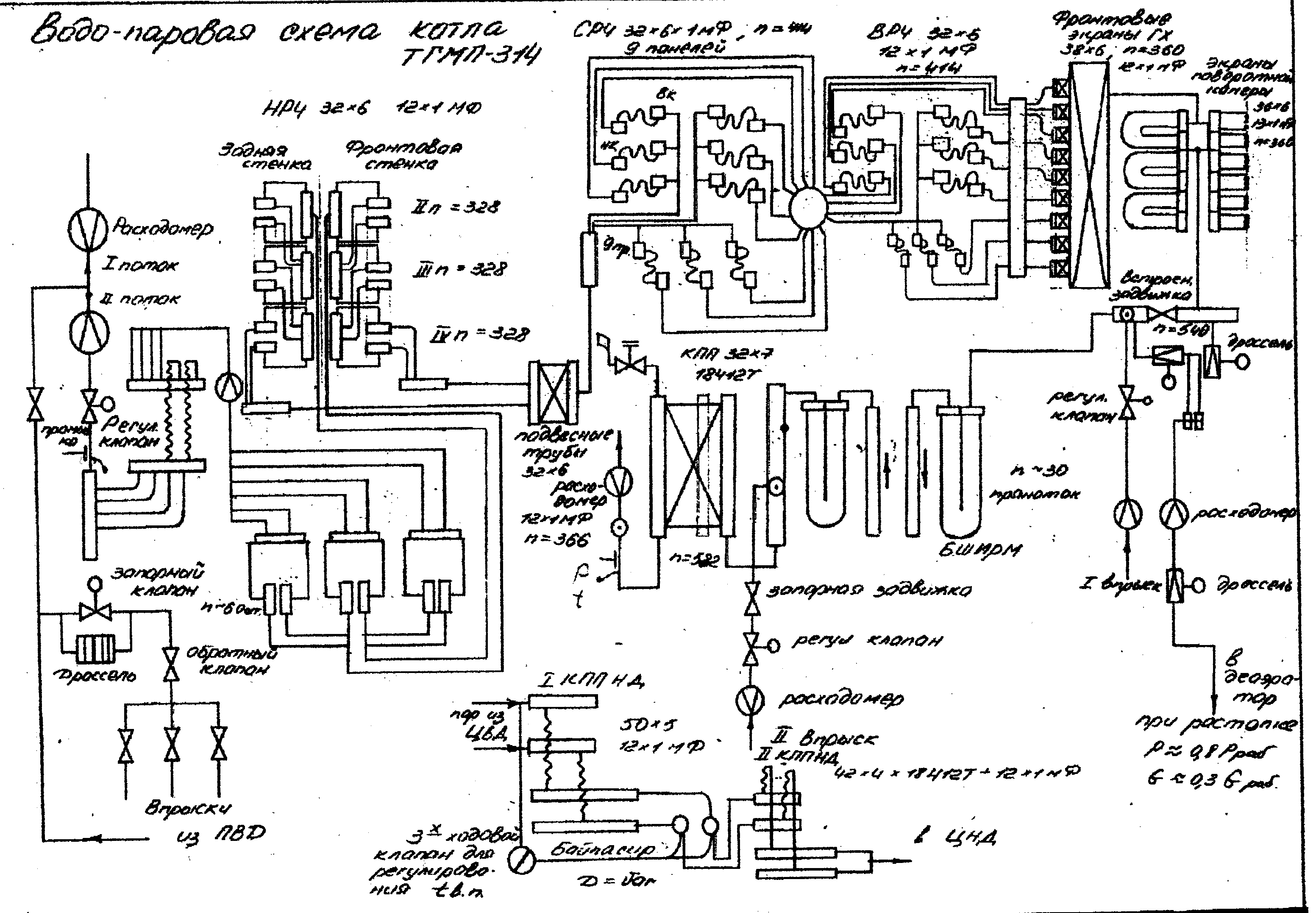 Выполнить тепловой конструктивный расчет поверхностей нагрева прямоточного парового котла сверхкритического давления (С. К. Д.) типа ТГМП-314А, построить его тепловую схему и выполнить эскизный чертеж в масштабе 1:100.