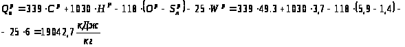 Перевіримо нижчу теплоту згорання робочого палива за формулою Д.І.Менделеєва