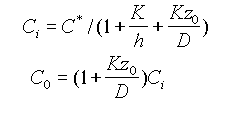 При стационарных условиях эти потоки равны, так что F3 = F2 = F1 = F. Следовательно, приравняв соотношения (1) и (2), можно выразить величины Ci и C0 через C*: