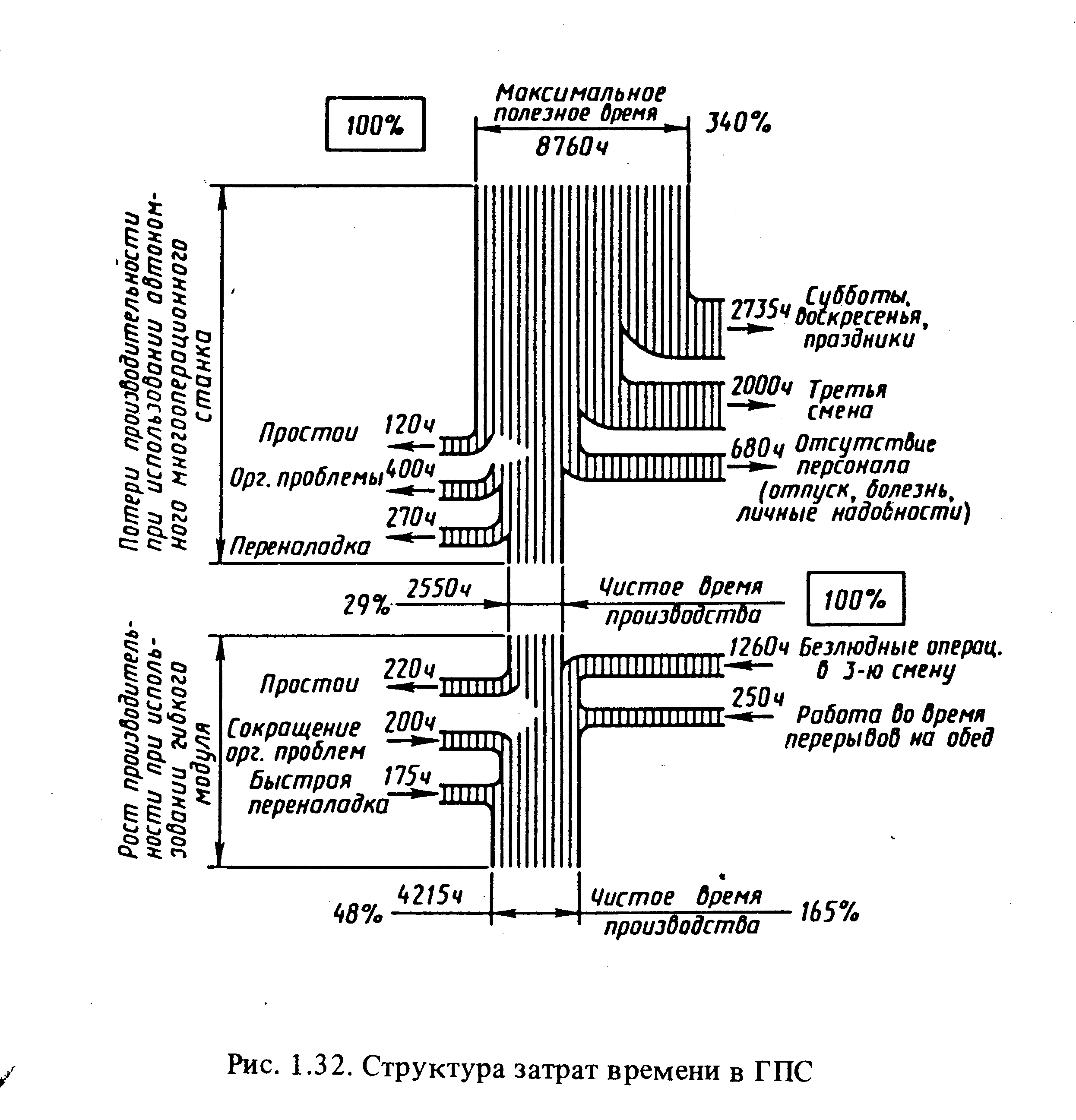 Поскольку в настоящее время изменение парка оборудования осуществляется в основном за счет станков с ЧПУ, эффективность ГПС следует рассматривать в сопоставлении с автономно эксплуатируемыми станками с ЧПУ.
