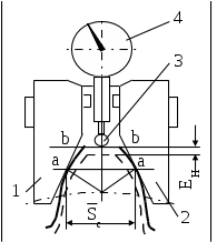 В длиномерах низкого давления (рис. 4.19) чувствительным элементом является водяной манометр 4, соединенный с водяным стабилизатором давления 3. При изменении зазора между оснасткой 6 и измеряемой деталью меняется положение водяного столба в манометре 4 относительно шкалы 5. Воздух к оснастке 6 поступает через кран 1, блок фильтра со стабилиза-