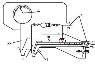 Жидкостный манометрический термометр (рис. 4.69, г) состоит из термобаллона, погружаемого в среду, температура которой подлежит измерению, соединительного металлического капилляра и упругого чувствительного элемента. Вся система заполнена термометрической жидкостью. При повышении температуры жидкость расширяется, что приводит к деформации упругого чувствительного элемента.