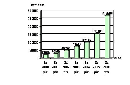 Рис. 2.1. Динаміка кредитних операцій комерційних банків України за 2000-2006 років.