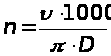 Частоту вращения шпинделя можно найти из следующей формулы: