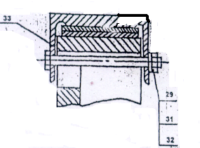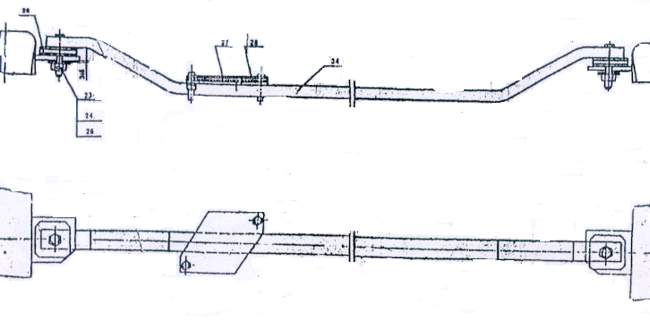 - удалить шплинт 23, свинтить гайку 24 с болта 25 и вынуть его, снять резинометаллическую прокладку 26, балку опорную 34.
