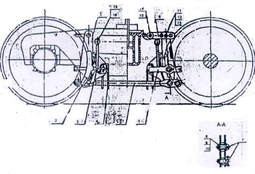 Разборка тормозной рычажной передачи производится в следующей последовательности в соответствие с рисунками 1, 2, 3, 4.