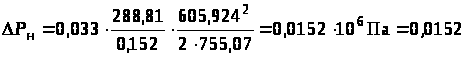 где >вх.>, >вых.> – коэффициенты местных сопротивлений при входе в трубу и выходе из нее; принимаем (>вх.> + >вых.>) = 1,3 [2, с.24];