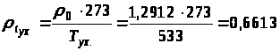 Плотность продуктов сгорания при температуре Т>ух.> = 533 К: