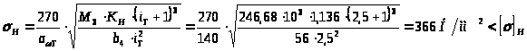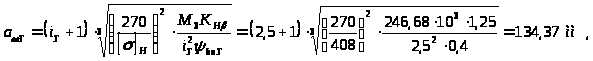 Межосевое расстояние из условия контактной выносливости активных поверхностей зубьев
