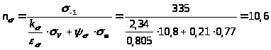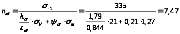 Такой большой коэффициент запаса прочности объясняется тем, что диаметр вала увеличен при конструировании для соединения его муфтой с валом электродвигателя. По этой же причине проверять прочность в остальных сечениях вала нет необходимости.