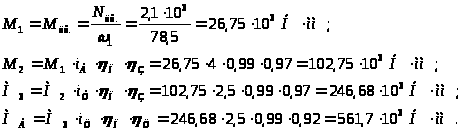 Вращающие моменты на валах определим, исходя из требуемой мощности электродвигателя: