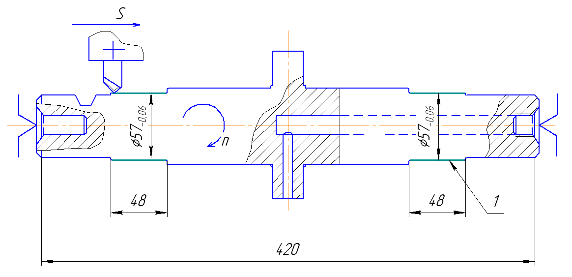 Где D - диаметр поверхности детали до наплавки, D = 57 мм.