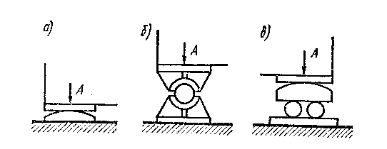 Опорные реакции в фермах значительны, поэтому передача их должна осуществляться строго по оси узла фермы. Четкая передача опорной реакции может быть достигнута за счет применения тангенциальной или специальной балансирной опоры (см. рис ).