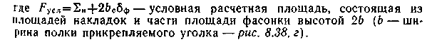 Расчетное усилие для крепления уголков пояса к вертикальной фасонке: