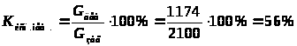 ηпок = Gпок / Gзаг ∙ 100% = 1720/2100 * 100% = 82%
