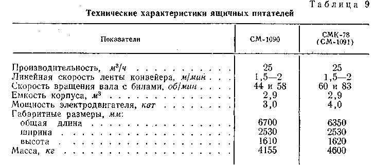 Выпускают также ящичные питатели СМ-1090 с резиновой лентой.