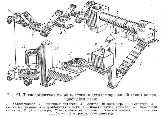 Дегидратированную глину получают на кирпичных заводах в барабанных печах, печах с кипящим слоем или на агломерационных решетках.