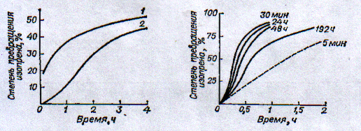 Для повышения активности каталитического комплекса необходимо время для его «созревания». Так, скорость полимеризации возрастает в первые 30 мин созревания комплекса, затем остается на постоянном уровне в течение 24 ч созревания, при более продолжительной выдержке комплекса наблюдается снижение его активности (рис.6).