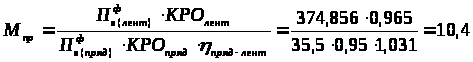 Коэффициент координации между прядильной и выпускной ленточной машинами.