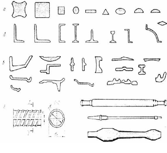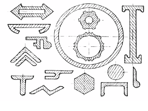 Сортамент пресування близький до прокатного. Пресуванням можна одержати труби із зовнішнім діаметром 200- 400 мм і товщиною стінки 1,5-12 мм, прути, дріт, кутники, швелери, багато інших складних спеціальних профілів (рис. 13). Ряд профілів неможливо дістати іншим способом.