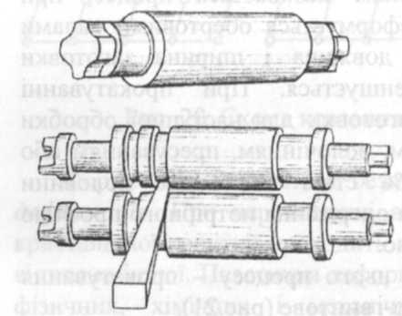 При поперечному прокатуванні (рис. 6 б) валки обертаються в один бік і осі їх паралельні, а заготовка деформується ними при обертанні навколо своєї осі.