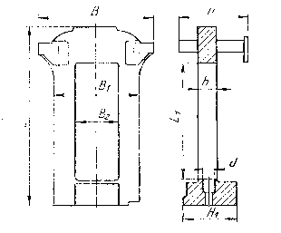 На рис. 11 показана отливка станины рабочей клети прокатного стана, для которой в соответствии с типовой технологией приняты дифференцированные значения усадки; по наружным размерам L, B, B1, H, h1-1,5%, по внутренним L1-0,75%, B2-0,5%, d-1%. Практика показала, что эти значения приемлемы для всего классификационного раздела.