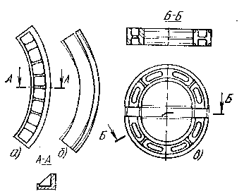 Торможение усадки привод в отливках незамкнутого контура (нежестких конструкциях) к короблению, которое выражается в искажении размеров отливки в каком-либо направлении. В полувенцах, секторах и других подобных отливках искажение возрастает от середины к краям в соответствии с усилением влияния торможения усадки формой. Мероприятием, предотвращающим возможное искажение размеров, является обеспечение направленной линейной усадки, увеличивающейся от середины отливки к краям. Если стенка отливки, подверженная короблению, подлежит механической обработке, на ее поверхность назначается припуск – максимальный в концевых частях детали и минимальный в середине. С целью предупреждения искажения размеров отливку отливают со стяжками, соединяющими ее концы. При большой высоте отливки применяют две или три стяжки.