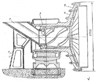 1 - тумба: 2—тічка: 3 — трубошнек: 4 — кришка з цапфою: 5 - бронефутеровка