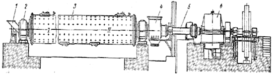 Сировинний трубний млин 4,2Х 10 м (мал. 1, 2) призначений для помелу сировини з одночасним тим, що його підсушив при роботі по замкнутому циклу. Вона складається із завантажувальної частини, барабана, розвантажувальної частини, двох корених підшипників, приводу і системи рідкого мастила.